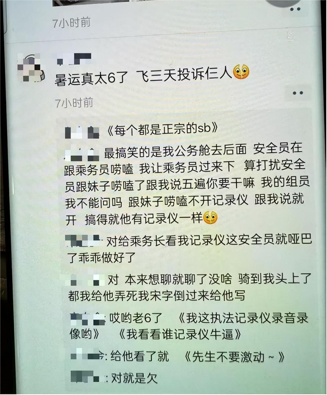 他甚至还说自己在飞机上飞行了三天,就投诉了三个人。